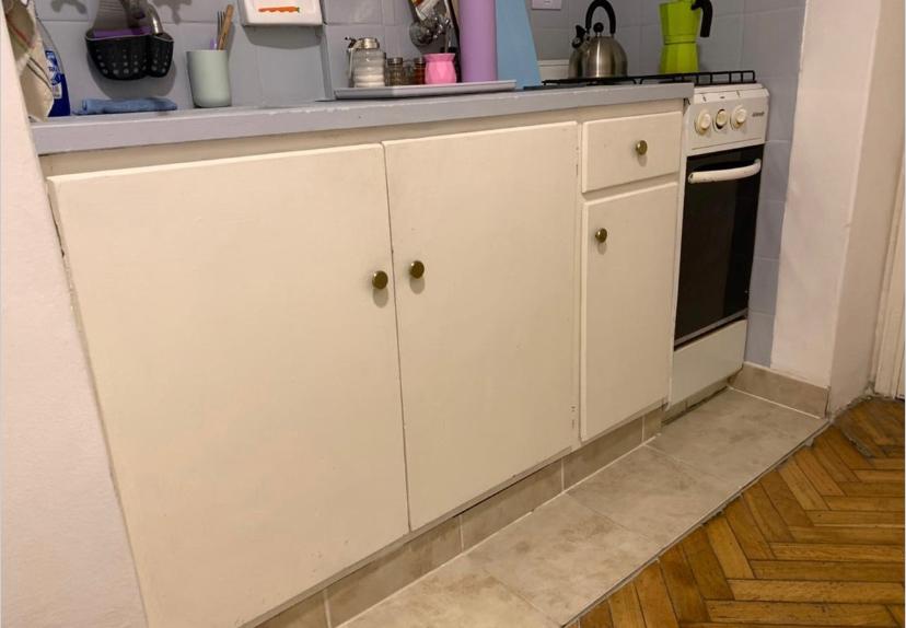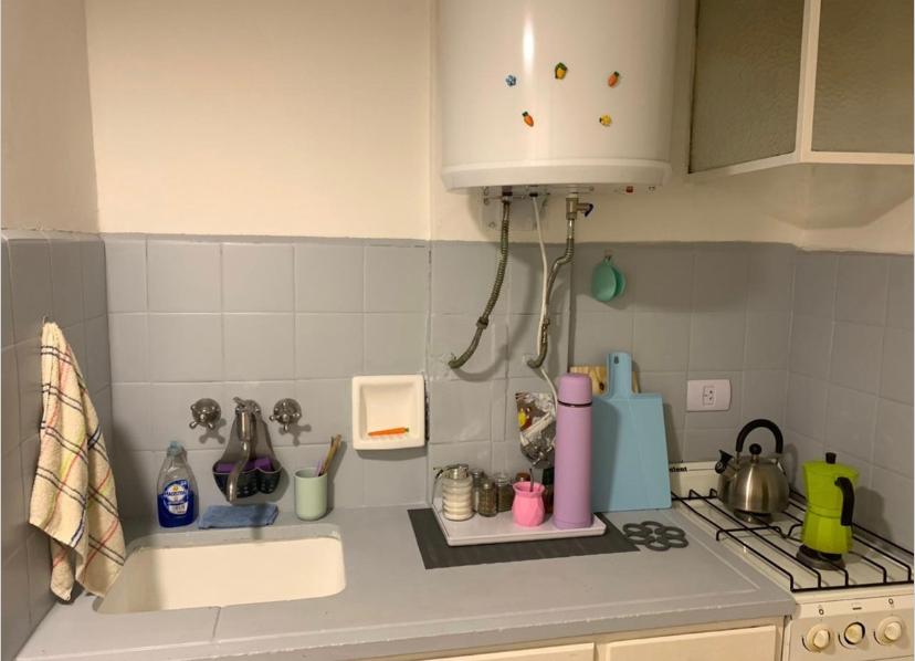 Amplio  ambiente con placard, al frente con balcón, kitchinette con cocina, parquet plastificado, óptimo estado. Muy Luminoso !!!!