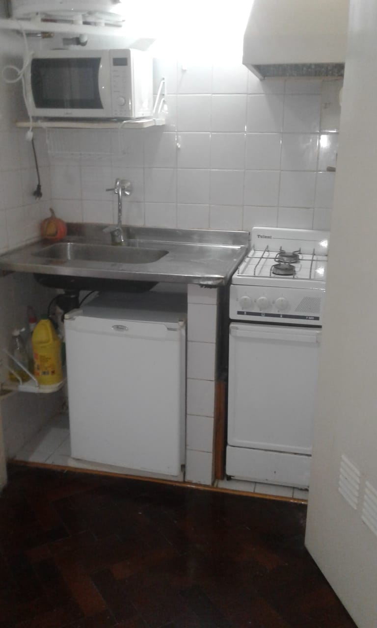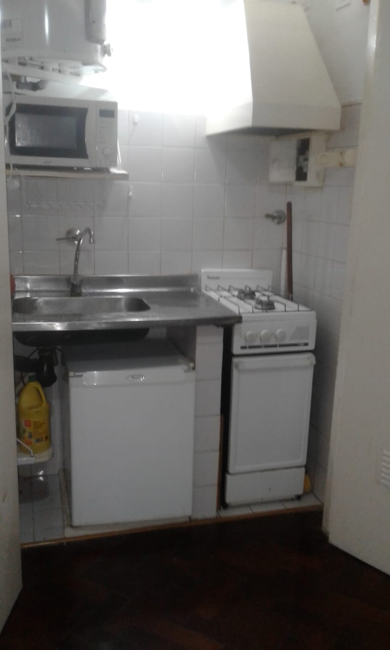 A mts Alto Palermo, hall de entrada con placard, baño con bañera, placard en el ambiente, kitchinette con heladera bajo mesada. y cocina con horno a gas. Luminoso